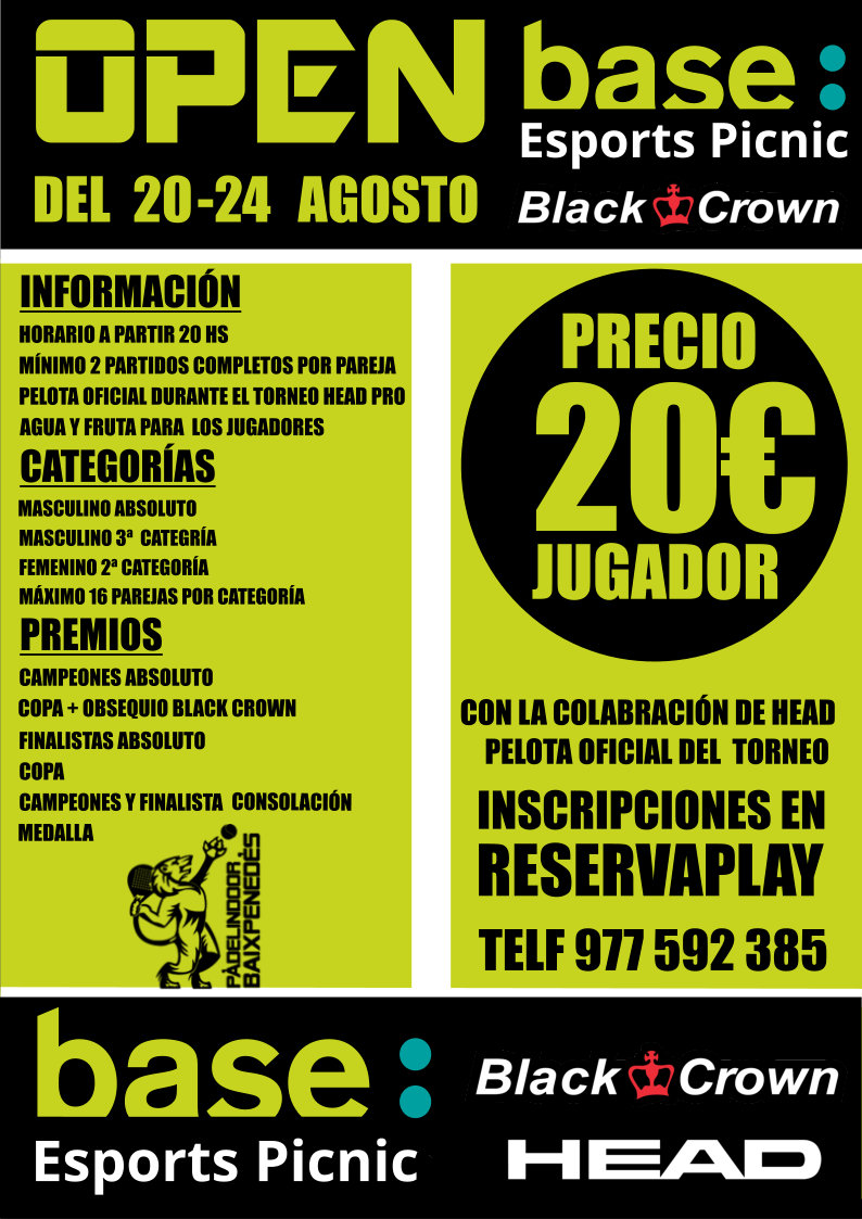 Open Base Esports Picnic - Masc Absoluto y 3ª Cat- Femenino 2ª y 3ª Cat